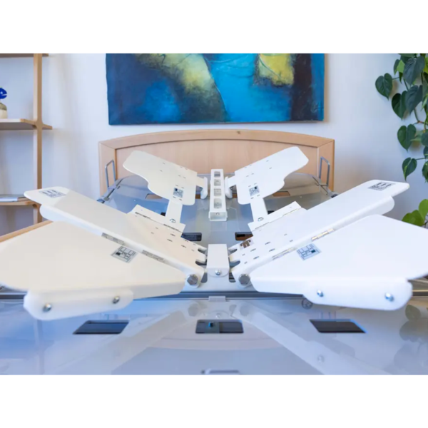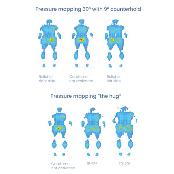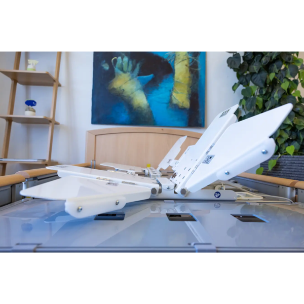 ••Reduced health care spendings (pay back in 3-4 months) | Manual mode: With a push on a button it turns the enduser from one side to the other to support the care staff in daily moving and handling procedures. In manual mode the wings can elevate up to 80⁰. Automatic mode: The control box has a preprogrammed setting and option for two additional programs. Careturner operates very silent and without any vibration allowing the patient to sleep undisturbed. In automatic mode the wings can elevate up to 30⁰. Intended use of the Careturner:
