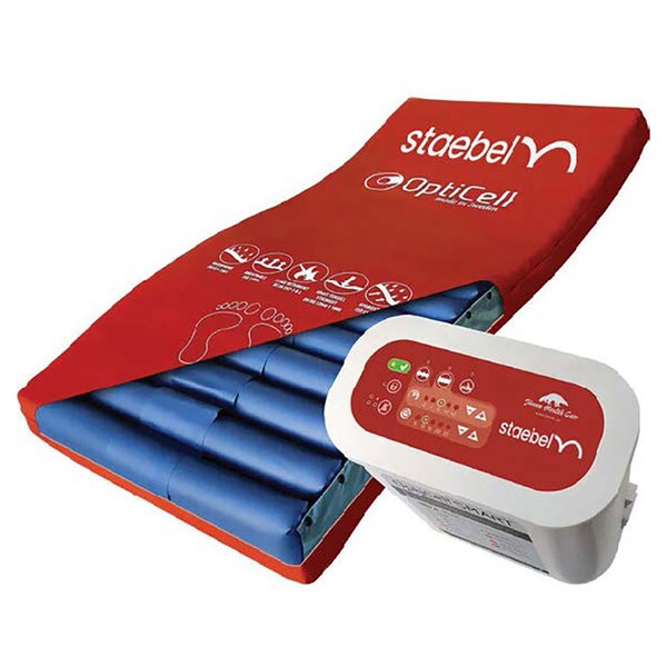 The Staebel OptiCell SMART R6 offers a patented TrueAlternating mode, which means that the deflated cell rises to complete inflation before the next cell cycle occurs; this ensures no movement up or down. This is unique to the OptiCell range and reduces/eliminates the end-user feeling nausea and motion sickness, a problem that can sometimes arise in traditional alternating mattresses. The fully automatic SMART pump improves efficiency and reduces human error with an easy-to-use and intuitive panel, eliminating the need for manual weight entry.